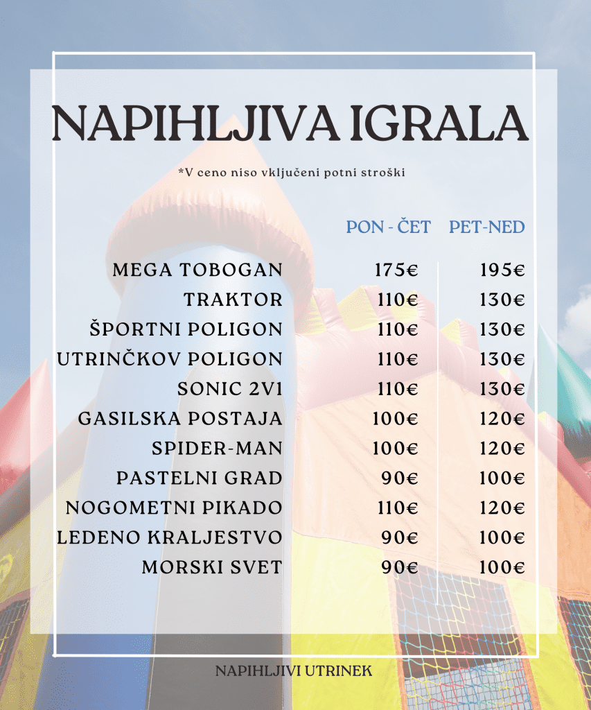 V kolikor želite posebno ponudbo nam lahko pišete na email info@napihljiviutrinek.si ali pa nas kontaktirate preko Športnega utrinka.